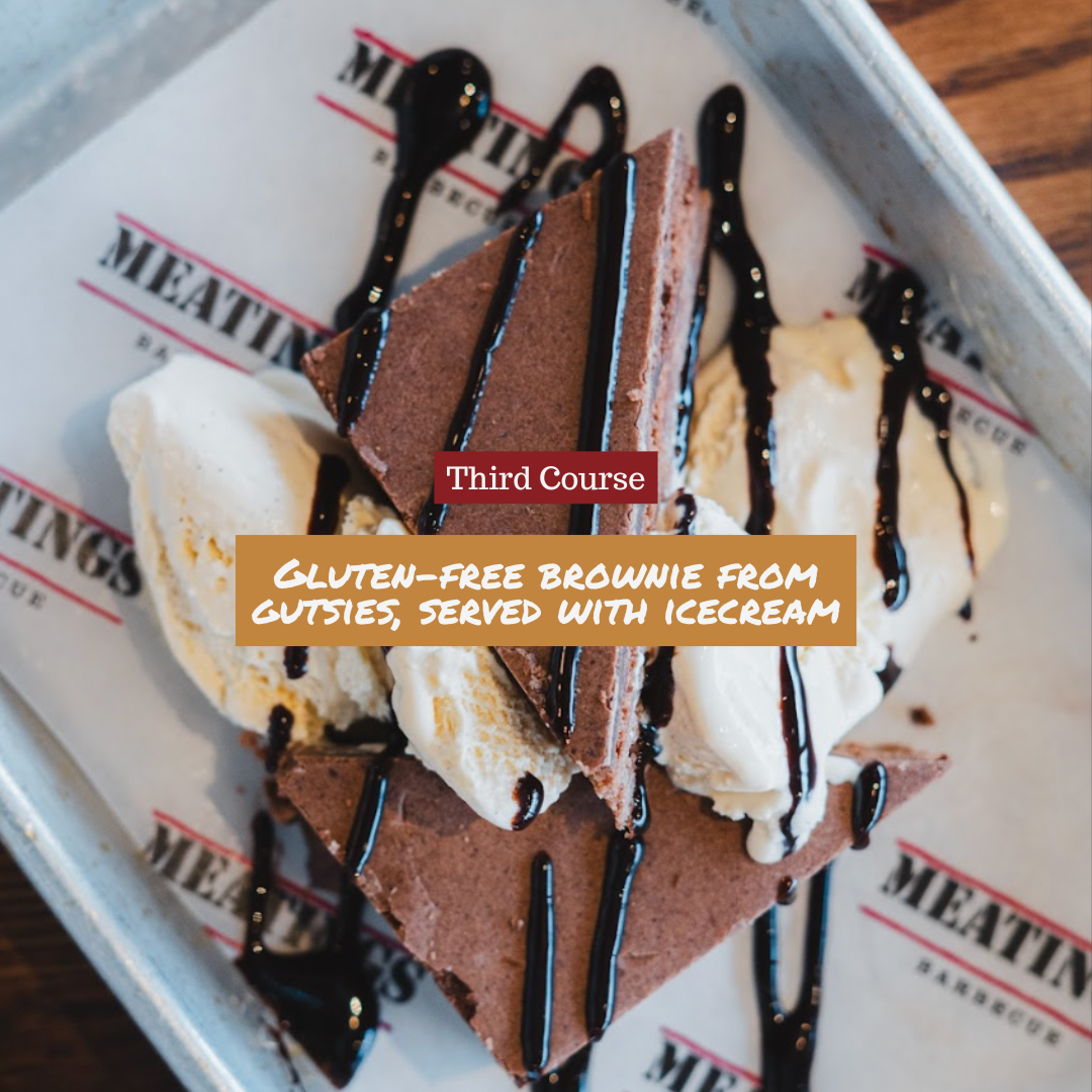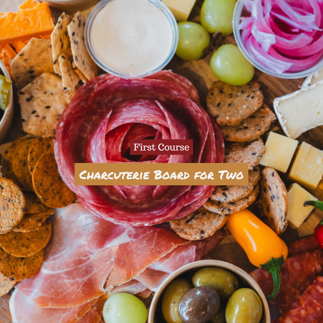 We'll be serving up a charcuterie board for two, a BBQ platter for two (includes pulled pork, smoked chicken leg, mac n' cheese, cornbread, smoked beans and caesar salad) and two GF brownies from Gutsies!