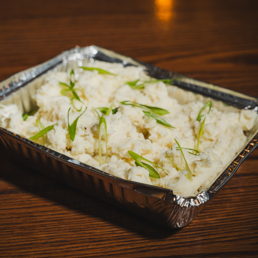 Our home-made creamy mashed potatoes. Made with yukon potatoes, milk, butter and garlic. Just reheat and eat! (Feeds 4-6 people)
